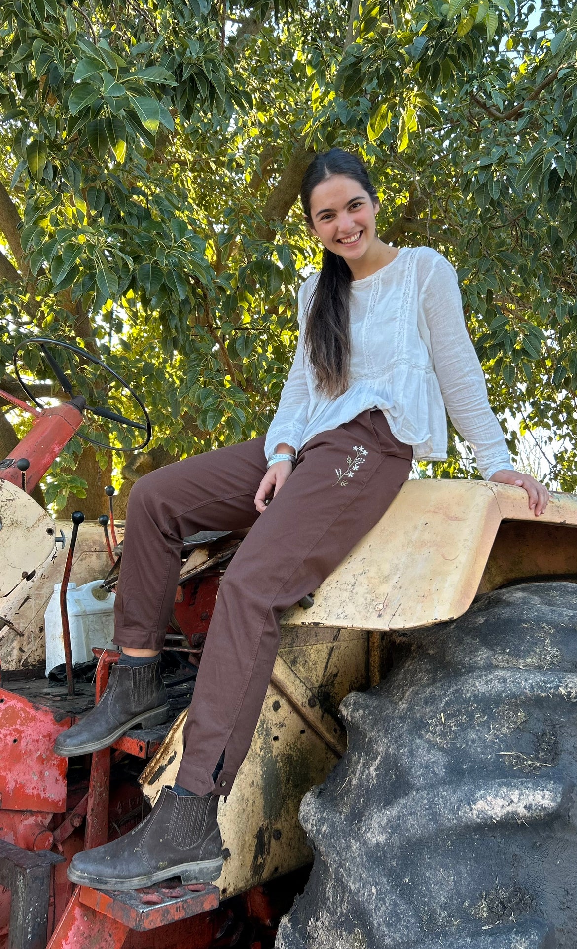 Bombachas de campo bordadas, gabardina elastizada.